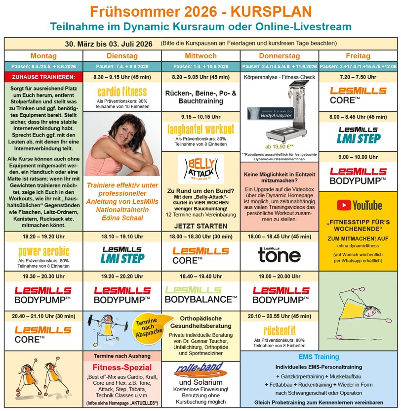 Weitere Informationen zum Groupfitness findet Ihr bei AKTUELLES